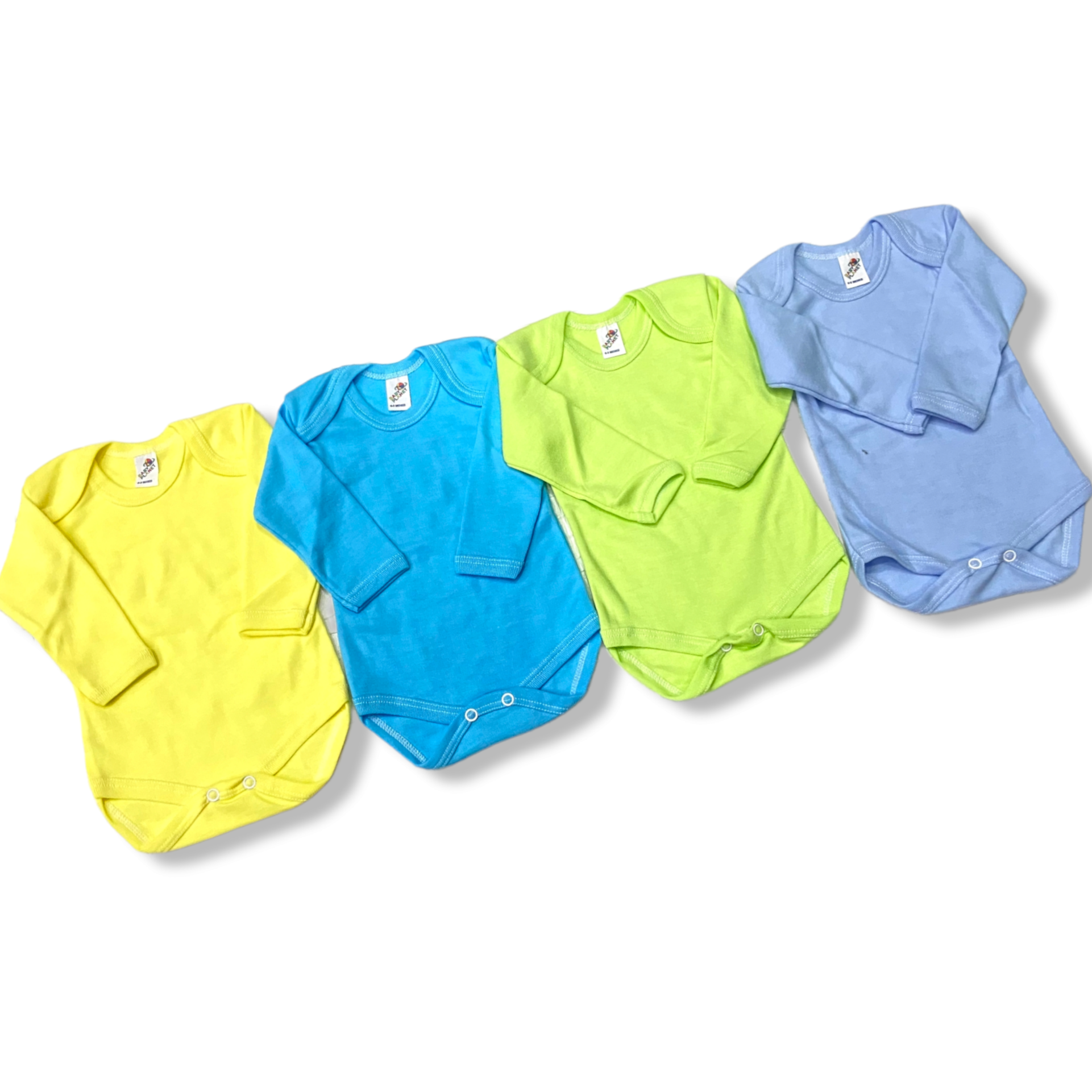 4 Pack de Pañaleros/Bodies Manga Larga para Bebé – 100% Algodón – Colores Pastel Lisos o Estampados – Tallas de 0 a 4 Años