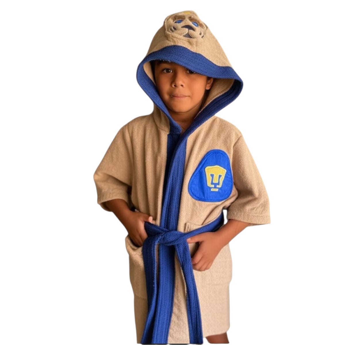 Bata de Baño equipo de futbol PUMAS UNAM para Niño – Microfibra Suave y Absorbente – Tallas 2 a 16 Años