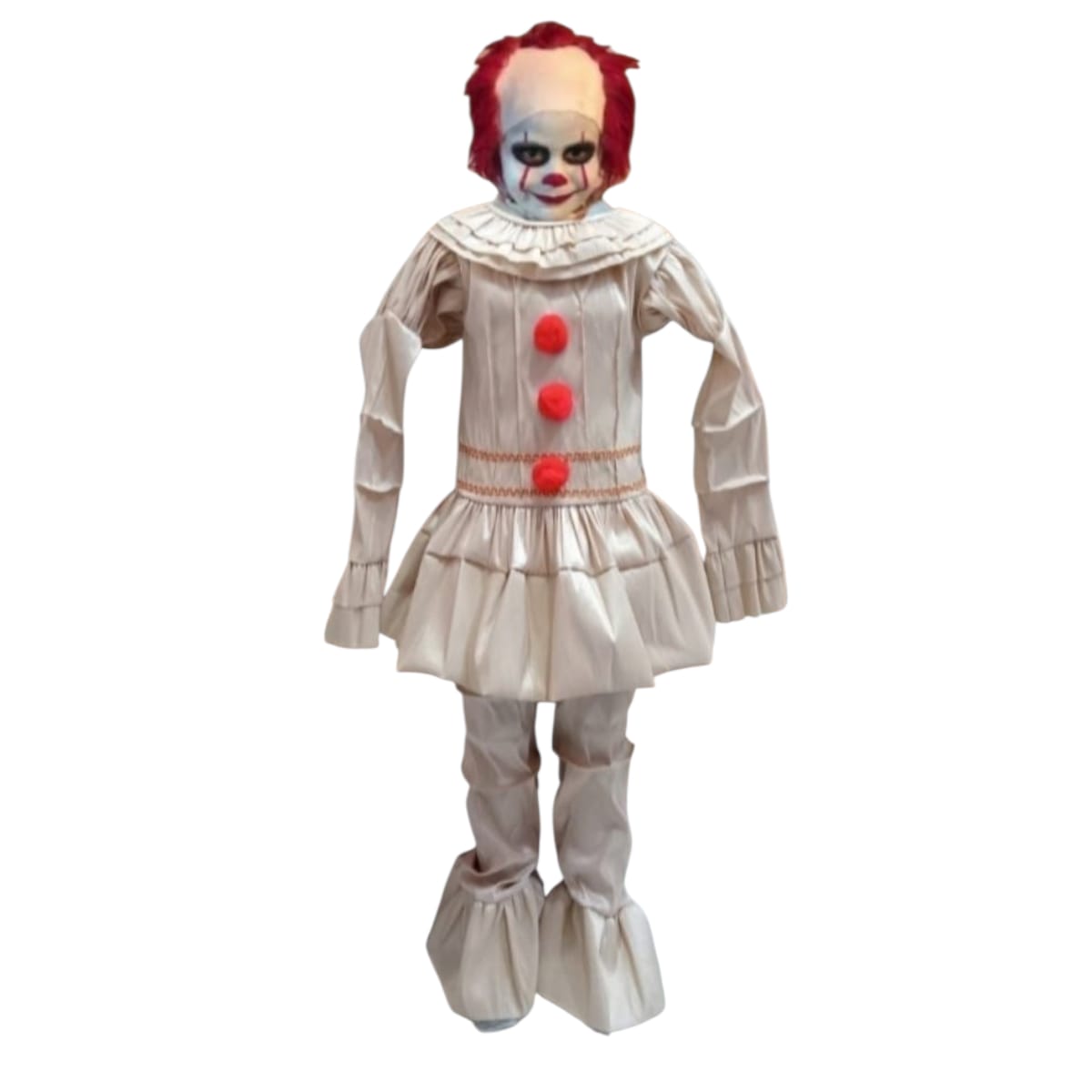 Haz que tu pequeño viva un Halloween espeluznante con este disfraz inspirado en la película IT – Pennywise el Payaso. Perfecto para fiestas de disfraces, festivales escolares o celebraciones de Día de Muertos.