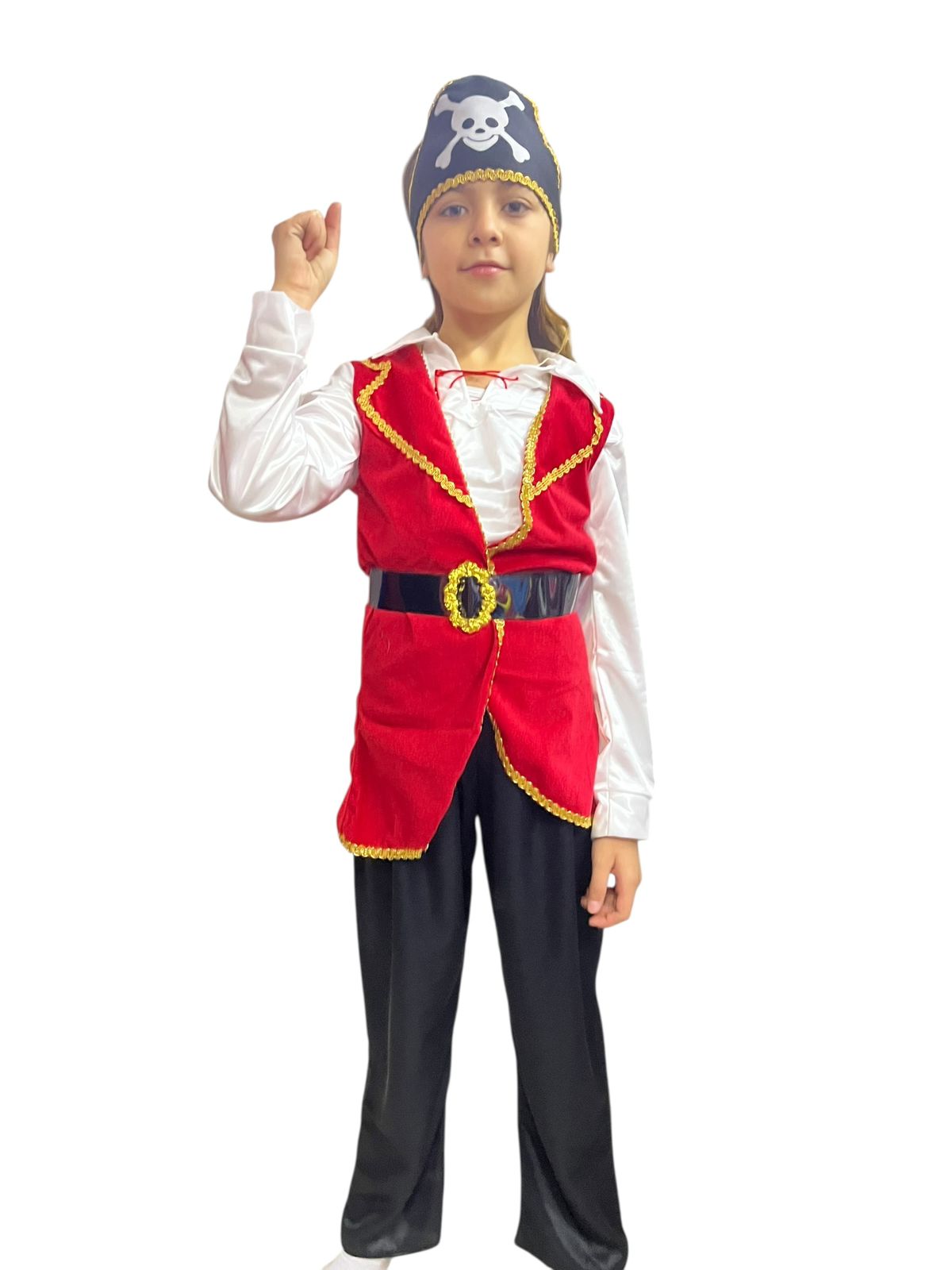 Tu pequeño corsario estará listo para surcar mares imaginarios y buscar tesoros con este disfraz de pirata, ideal para Halloween, Día de Muertos, festivales escolares o fiestas temáticas.
