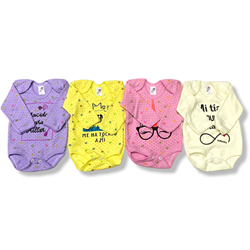 Juego de 4 pañaleros o Bodies Manga Larga lisos o estampados